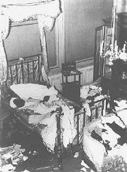 These pictures show some of the destruction that happened the night of the broken glass. The buildings are synagogues( Jewish churches) which burned , the rooms are a jewish home, then it’s storefronts with broken windows. The jews were then forced to clean it up.